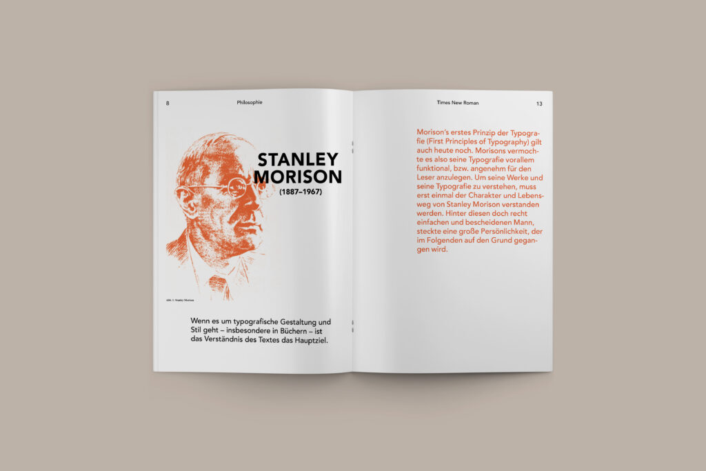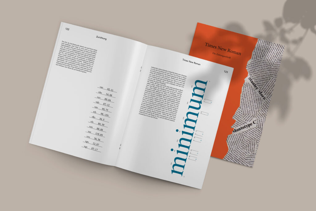 Dieses Editorial-Design-Projekt entstand im 2. Semester als Uniprojekt in Zusammenarbeit mit Ingrid Trojer, Adrian Schub und Sarah Huber. Inhalt des Magazins ist die Analyse der Zeitungsschrift Times New Roman. Im Fokus stehen sowohl die Entstehungsgeschichte der Schrift als auch die Untersuchung ihres Schriftbildes und ihrer gestalterischen Eigenschaften. Ziel war es, eine sehr bekannte Schrift nicht nur historisch einzuordnen, sondern ihre formalen Merkmale gestalterisch nachvollziehbar aufzubereiten.