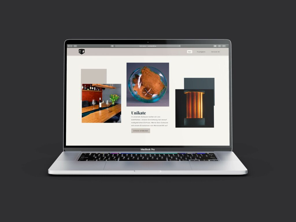 Zusätzlich zum bestehenden Corporate Design wurde für die Firma „Werkstatt 90“ ein Webauftritt konzipiert und umgesetzt. Die Website dient als Produktportfolio zur Präsentation von Unikaten und Kleinserien. Der Verkauf erfolgt nicht über einen klassischen Onlineshop, sondern über den direkten Kontakt mit dem Geschäftsführer.